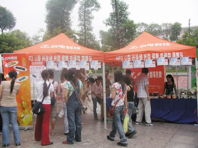 21 活動房內的工作人員也是非常的忙碌,臺電的小數碼產品特授歡迎。