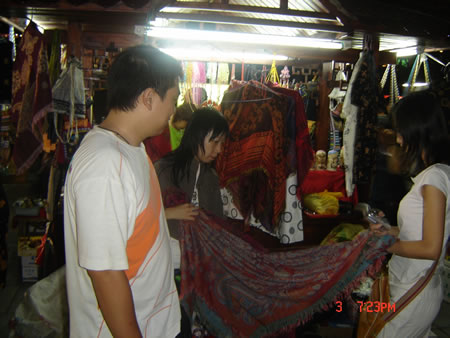 琳瑯滿目的特色物品勾起我們無限的購物欲,漂亮的披肩拿在手里實在不忍放下。