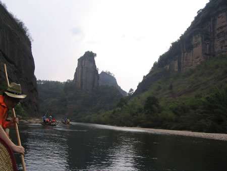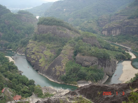 武夷山風(fēng)景區(qū)東西寬約5公里,南北長(zhǎng)約14公里,面積60平方公里。有九曲溪、溪南、水簾洞、碧石巖、桃源洞、三仰峰、武夷宮、云窩等景點(diǎn),屬典型的丹霞地 貌,素有“碧水丹山”、“奇秀甲東南”之美譽(yù),是首批國(guó)家級(jí)重點(diǎn)風(fēng)景名勝區(qū)之一,被國(guó)際旅游組織執(zhí)委會(huì)主席巴爾科夫人稱(chēng)為“世界環(huán)境保護(hù)的典范”。武夷山是《洞天福地記》(杜光庭)里的三十六洞天之一。“三三秀 水清如玉,六六奇峰翠插天”,構(gòu)成了奇幻百出的武夷山水之勝。“溪曲三三水,山環(huán)六六峰”,“曲曲山回轉(zhuǎn),峰峰水抱流”﹔臨水可觀山景,登山可望水秀,乘上一 葉竹筏游覽世間一絕的九曲溪,順流而下,山沿水立,水隨山轉(zhuǎn),山光水色,交相輝 映,三十六峰、九十九巖一覽無(wú)余,其間更有距今約3800年前高插于懸崖峭壁之上的 船棺,令人嘆為觀止.....