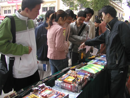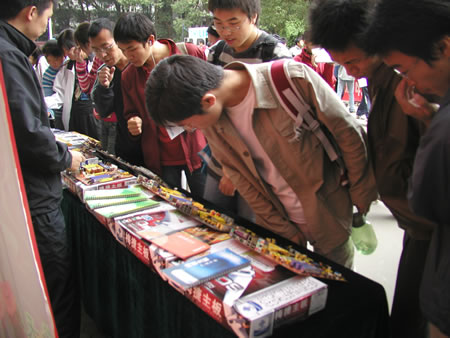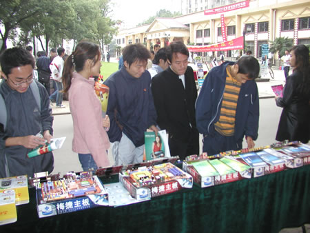 10月22日上午,武漢分公司來到華中師范大學。九點半,已經有不少商家開始布置展臺了,我們也趕緊將產品一一擺放出來。
