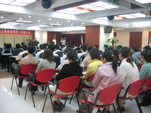在這樣一個(gè)金秋收獲的季節(jié)里,商科集團(tuán)第三季度的優(yōu)秀員工表彰大會(huì)于2005年11月1日在廣州天河北光大銀行大廈的會(huì)議中心隆重舉行。商科總部的全體工作人員和廣州分公司所有員工無(wú)不到場(chǎng)。