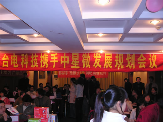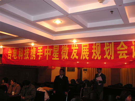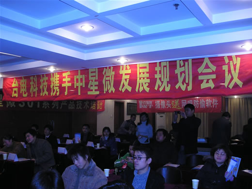 會(huì)議召開前奏,南昌分公司早早來到會(huì)場(chǎng)把“臺(tái)電攜手中星微發(fā)展規(guī)劃會(huì)議”的大橫幅掛在會(huì)場(chǎng)中間,搶占了至高點(diǎn),高手風(fēng)范。