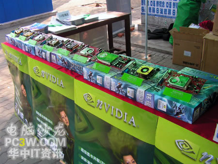 作為NVIDIA從去年來就大力推廣的SLI技術自然是最能吸引大家注意的,不少同學都對這種雙卡并聯技術產生了濃厚的興趣。工作人員也對SLI的一些具體細節進行了詳實而周到的解釋。