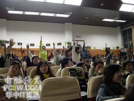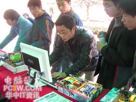 看就要看個仔細,不少同學拿起自己所喜愛的顯卡后,簡直是愛不釋手。從各個角度把演示產品瞧了個仔細。