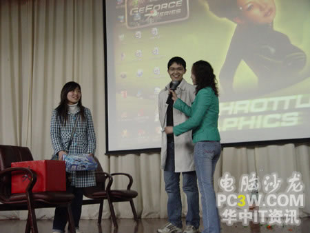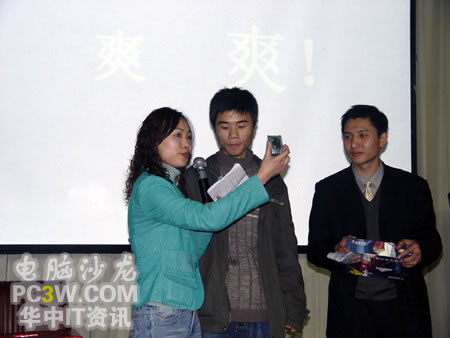 當這位帥哥幸運的被抽中并上臺領獎的時候,引起臺下女生的一片嘆息聲哦。似乎有不少MM對這款MP3情有獨鐘嘛!