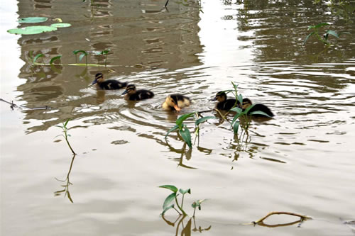 (池塘里鴨子戲水,別有一番情趣)