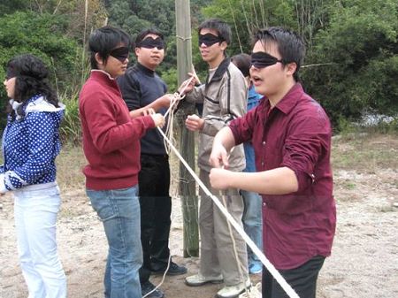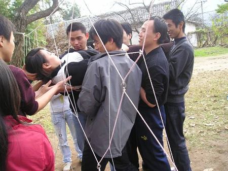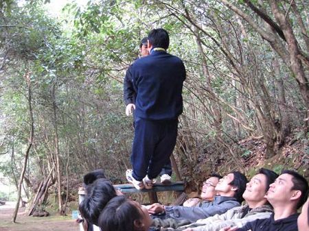 “中國龍”隊(duì)正以優(yōu)美的身姿體驗(yàn)高難度的“信任背摔”項(xiàng)目