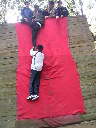 “中國龍”隊(duì)在隊(duì)長的帶領(lǐng)下全部順利通過畢業(yè)墻