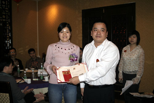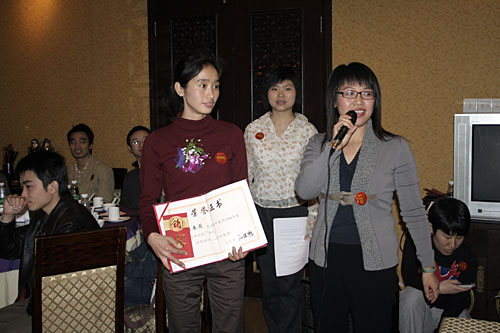 晚會開始前商科集團領導對本年度表現優秀的員工進行了嘉獎和表彰他們是:第四季度部門之星:技術部 :敖亞軍、業務部:吳翠、市場部:臧永剛,第四季商科標兵:財務部:羅春菊,第四季度銷售標兵 :田勇,2006年度杰出員工:馮燕蘭,優秀職能經理 :楊毅,優秀經理 : 邵清泉