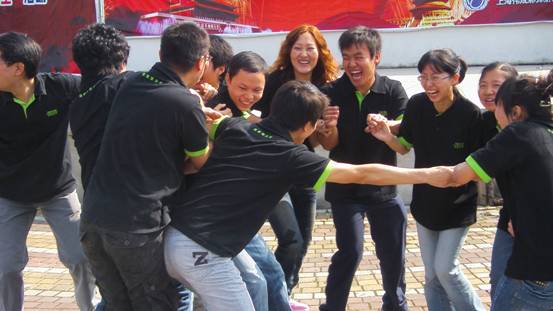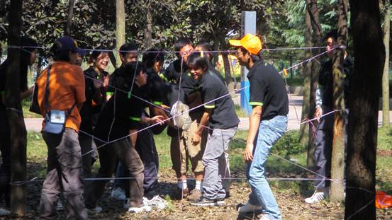 開始緊張、艱難的拓展訓(xùn)練之前,當(dāng)然也少不了輕松的熱身。我們?cè)谝辉褰钦胰嗣駧诺挠螒蛑校憩F(xiàn)出來前所未有的活潑,不管是誰剎那間都變的無比可愛起來。