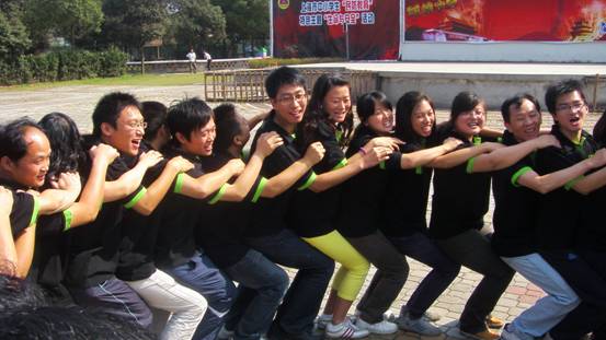 第二個(gè)是“人椅”。教練讓大家圍成圈,每個(gè)人的手都跨過一個(gè)人搭在前面人的肩膀上,然后一起坐在后面人的膝蓋上。開始所有人都覺得不可能完成的任務(wù),可當(dāng)我們下定決心,打破男女隔閡一起往下蹲時(shí)才發(fā)現(xiàn),這是件非常容易且不費(fèi)任何力氣的任務(wù)。原來,只要我們能夠緊緊團(tuán)結(jié)在一起,齊心協(xié)力,沒有什么完成不了的事情!