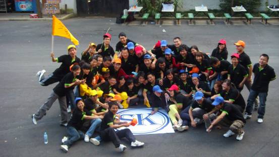 熱身過后所有人分成四組,每組自選隊(duì)長、隊(duì)秘、隊(duì)名、口號(hào)。然后向大家介紹本組,每組喊出口號(hào)時(shí),都是充滿激情,斗志昂揚(yáng)!