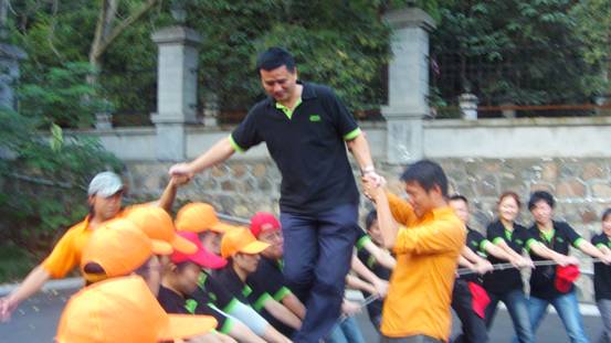 此時(shí),日已西斜。教練拿出一根長繩讓我們拉成一圈,繩圈上承載著領(lǐng)導(dǎo)對(duì)我們的信任,承載著我們的責(zé)任,每個(gè)人都異常專注、用心的盡著自己的全力。我們的孫副總也是非常輕松和堅(jiān)定的對(duì)教練說:“我信得過我的團(tuán)隊(duì),他們一定能讓我安全的走完繩圈!”