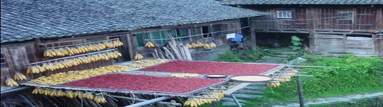 平安寨是龍脊山上的壯家村寨,海拔800多米,全村100多戶人家,幾百人,世世代代都以務(wù)農(nóng)為業(yè),油光锃亮的紅辣椒就是這里的特產(chǎn)。中外馳名的龍脊梯田改變了這座山寨的生活方式。山寨依然很平靜,但變得一點(diǎn)兒也不寂寞。