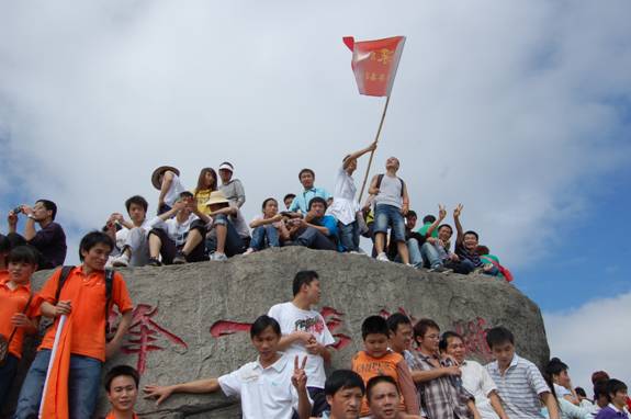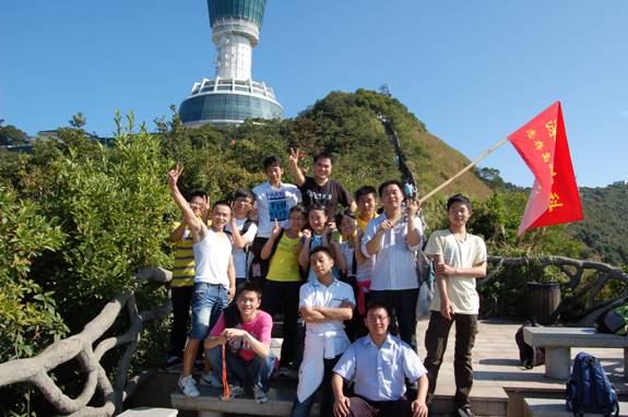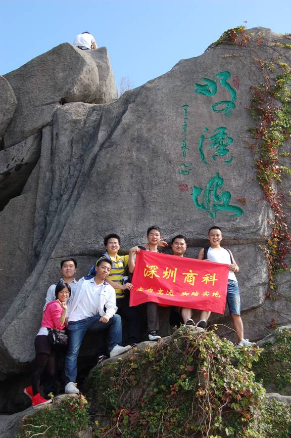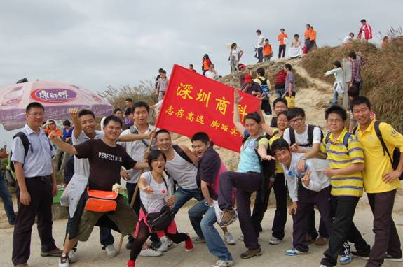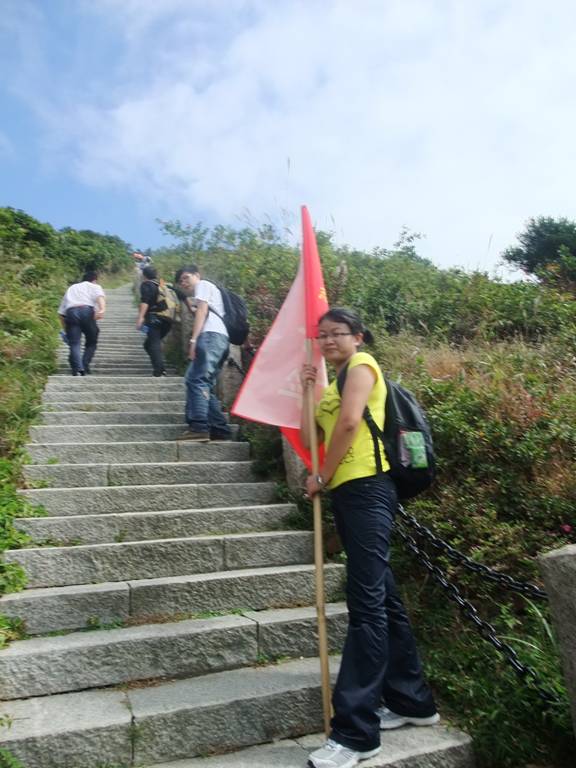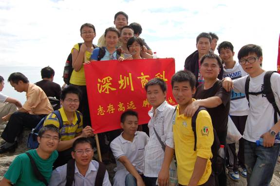 “深圳商科的紅旗在鵬程第一峰迎風(fēng)飄揚(yáng)----志存高遠(yuǎn),腳踏實(shí)地!” 歷盡千辛萬苦終于到了山頂,低頭看看那長(zhǎng)長(zhǎng)的臺(tái)階,心在跳,腿在抖,人到底還是上來了,“會(huì)當(dāng)凌絕頂,一覽眾山小”,看著遠(yuǎn)處的高樓大廈,有很強(qiáng)的成就感。