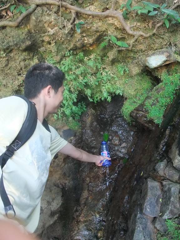 半途補(bǔ)充水源,排隊(duì)接山泉水。。瞧,一片樹葉,清澈甘甜的山泉水滴滴而下。梧桐山的這一方山水,對(duì)于滿眼鋼筋水泥、燈紅酒綠的深圳人來說,真可謂是一方不用燒香磕頭的心靈圣土、精神家園啊。