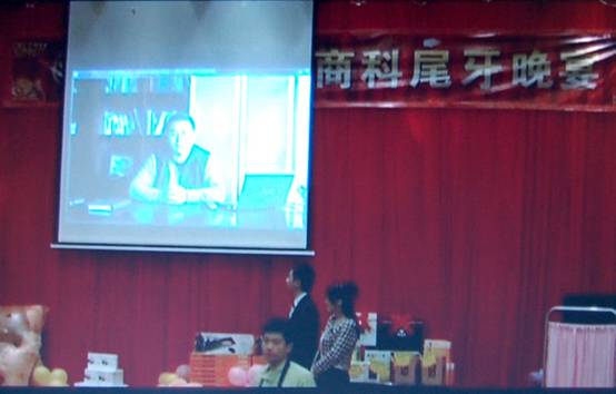 商科集團總經(jīng)理孫武源先生的聲音響徹會場,投影布上出現(xiàn)孫總為在座的各位經(jīng)銷商朋友致辭的畫面,DV畫面里孫總對2010年深圳商科的工作做出了肯定,對2011年商科的發(fā)展態(tài)勢表示樂觀,并祝福各位經(jīng)銷商朋友兔年大吉大利。大顯身手。財運亨通。事業(yè)興旺。全家幸福!