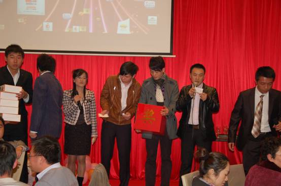 晚宴現(xiàn)場還同時進行了抽獎活動,獎品尤其豐厚,總部產(chǎn)品事業(yè)部趙愛軍經(jīng)理。賈慶楓經(jīng)理上臺抽取四個特別獎,并為獲獎者頒發(fā)獎品;