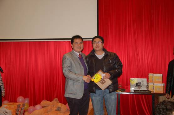 深圳分公司余經(jīng)理上臺為晚宴抽取了五名三等獎,獎品分別為梅捷主板一塊、銘瑄主板一塊、銘瑄顯卡一塊、臺電移動硬盤一個、臺電MP4一臺;