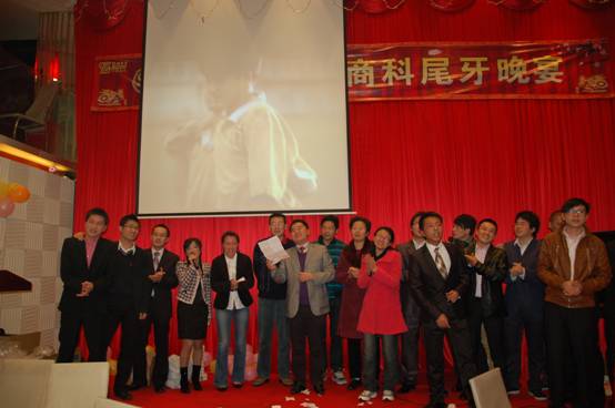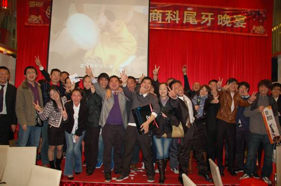 晚宴進入最后高潮,商科各位公司同仁一起上臺答謝經(jīng)銷商朋友,并高唱<<朋友>>,在歌聲中緩緩落下帷幕。。。