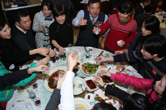 進行曲之三:玉兔呈祥家家樂 之豐盛晚宴。看完精彩的表演,大家也有些餓了,于是迫不及待的進入第三部分—用餐。豐盛的晚餐讓大家都吃的很開心,席間,大家談笑風生,暢談這一年來的感受,對過去的總結以及對未來的展望。