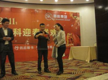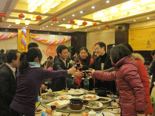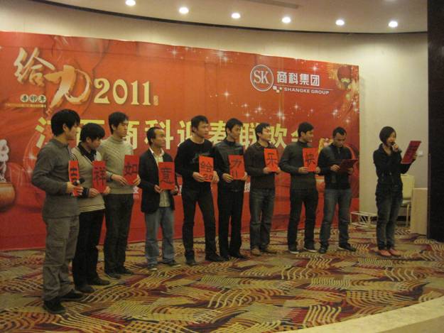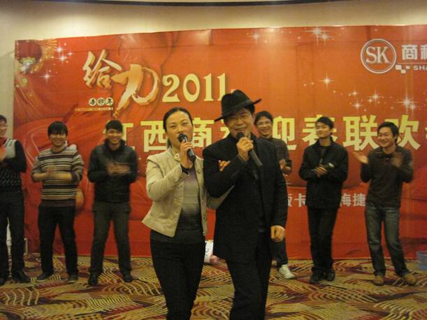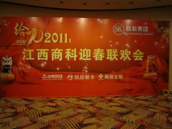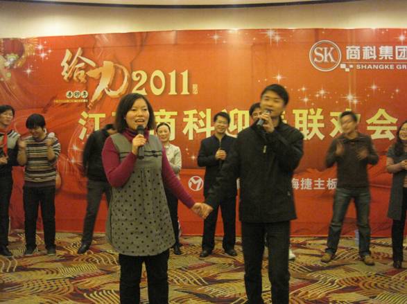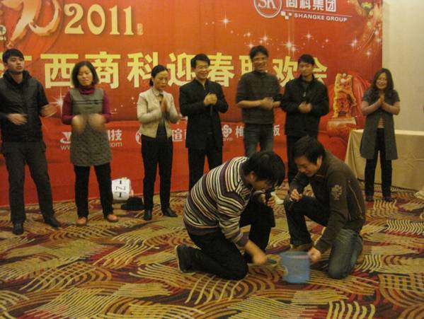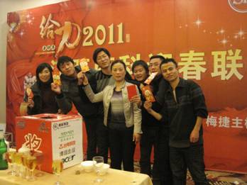 2011年元月28日,江西商科2011年春節(jié)聯(lián)歡會(huì)如期在南昌百瑞麗景18樓百瑞廳舉行。 聯(lián)歡會(huì)分為三部分:文藝表演、晚宴、抽獎(jiǎng)。 猛虎辭舊歲,玉兔迎新春;冰雪封不住青春的熱情,2011正隨春潮滾滾而來(lái),希望所有的同事能在兔年里心想事情,事事順利。