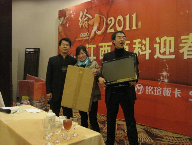 年會(huì)抽獎(jiǎng)品:液晶電視、顯示器、電子書(shū)、臺(tái)電數(shù)碼播放器、電話卡、臺(tái)電攝像頭。。。。。,很豐富呀,