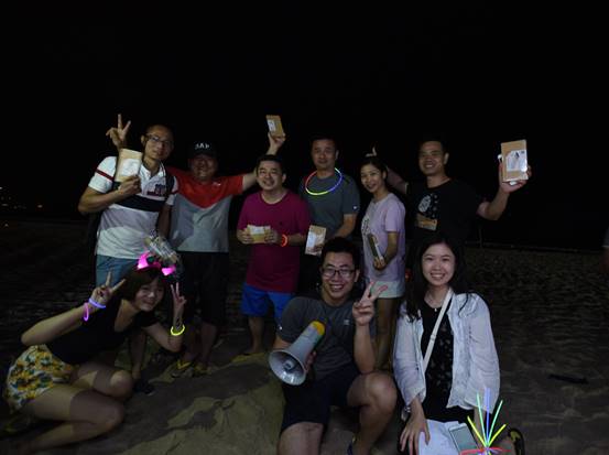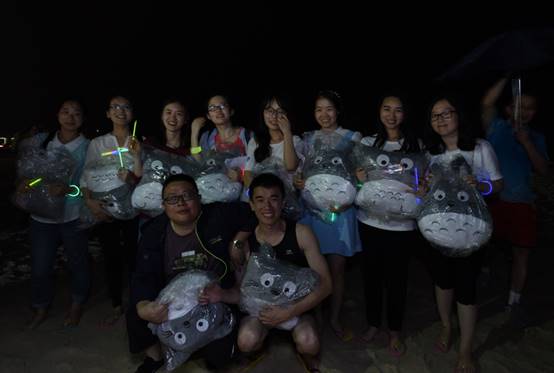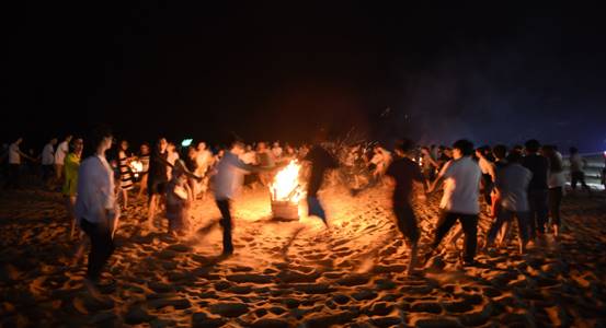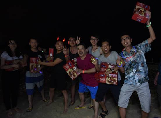 到了海邊,除了體驗(yàn)美麗的海島風(fēng)情,當(dāng)然還要享受海鮮大餐,魚蝦蟹貝,美味的晚餐盛宴,讓大家大飽口福。大快朵頤之后,開始了篝火晚會。在海灘上,伴著陣陣的濤聲,歡快的音樂聲,大家挽著手,環(huán)成圈,跑著,跳著,忘卻一切壓力與煩惱,盡情歡暢。期間,還對下午比賽勝出的隊(duì)伍進(jìn)行了頒獎,沒有獲獎的隊(duì)伍也不要沮喪喲,你們都是最棒的!