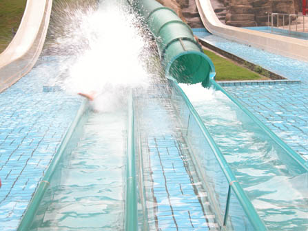 管道有封閉的是可以坐在一個水圈上,伴隨著水花,體驗一種在失控的情景下高速下滑的那種緊張的滋味,只可以一個人玩,不準另帶家屬。