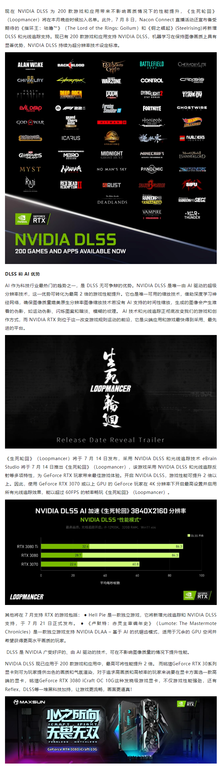 超200款游戲和應用支持DLSS!銘瑄RTX30顯卡助你通關