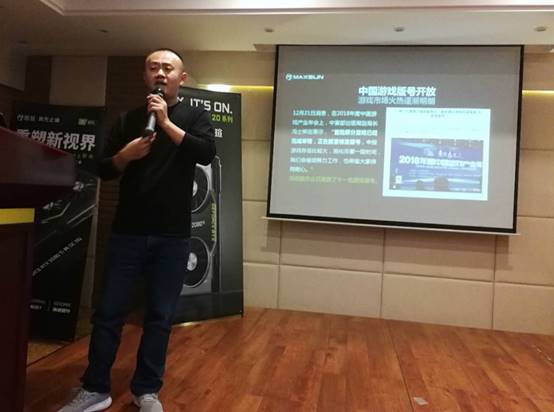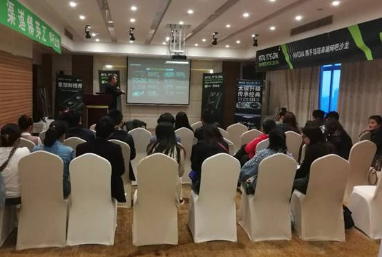 會議開場后,NVIDIA網(wǎng)吧業(yè)務(wù)代表楊成出席了本次會議,并在會議上作出了演講,為現(xiàn)場客戶詳解了新品知識。