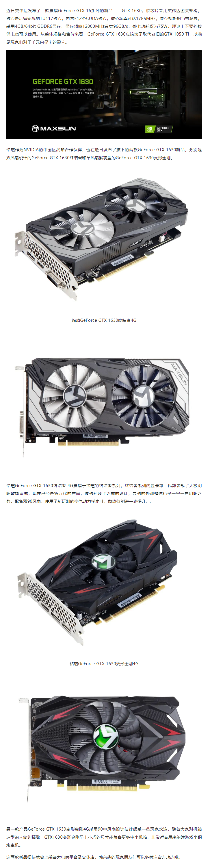 千元級(jí)更好的選擇 銘瑄GeForce GTX 1630雙雄發(fā)布