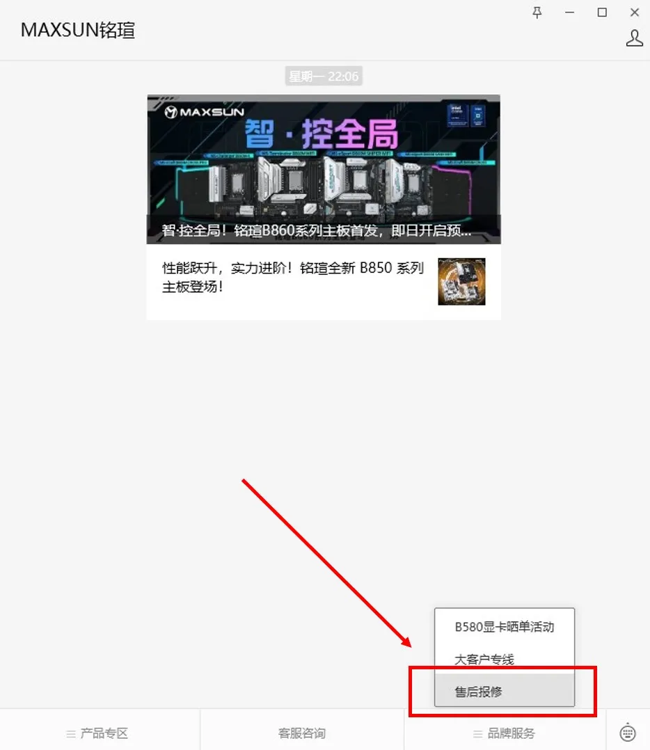 銘瑄始終將用戶體驗放在首位,為了給廣大用戶帶來更加便捷、高效的售后服務體驗,銘瑄官方公眾號現已支持售后報修功能,幫助用戶輕松解決產品售后問題。當用戶需要進行報修時,只需點擊銘瑄公眾號右下方【品牌服務】欄目,選擇【售后報修】即可進入報修小程序。
